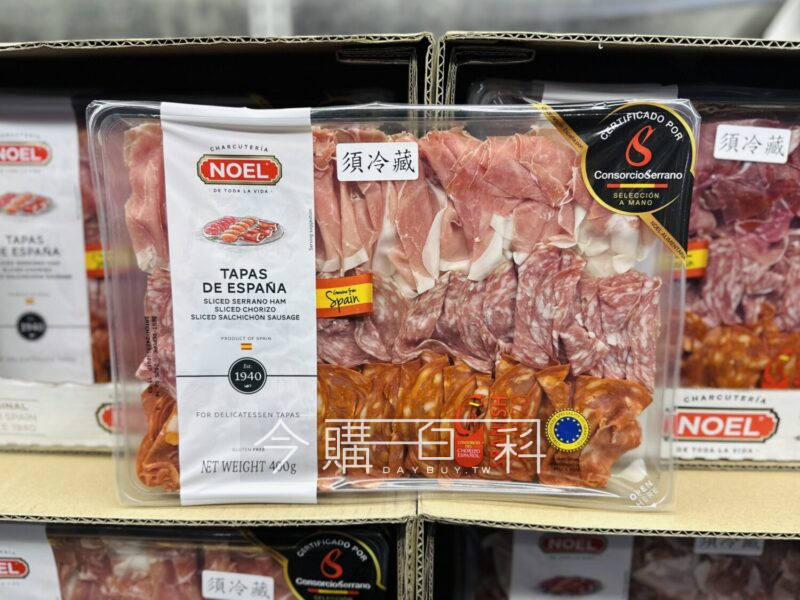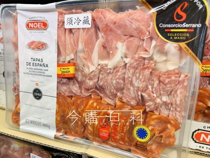 內含三種不同的風乾肉品:賽諾拉火腿、西班牙辣椒臘腸、西班牙臘腸,適合搭配紅酒,適合搭配三明治以及沙拉,產地:西班牙。