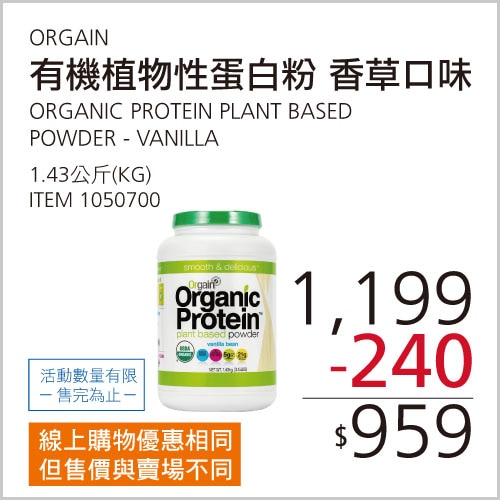 ORGAIN 有機植物性蛋白粉 香草口味 #1050700