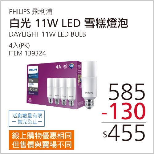 PHILIPS 飛利浦11W LED雪糕燈泡真彩版 白光 #139324