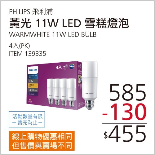 PHILIPS 飛利浦11W LED雪糕燈泡真彩版 黃光 #139335