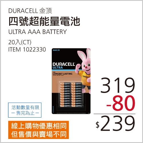 DURACELL 金頂超能量AA三號/AAA四號電池20入 #1022328 #1022330
