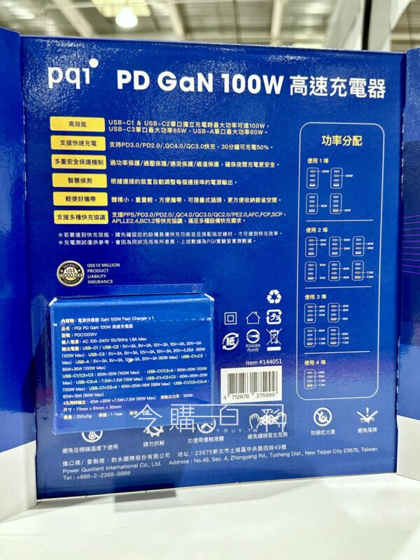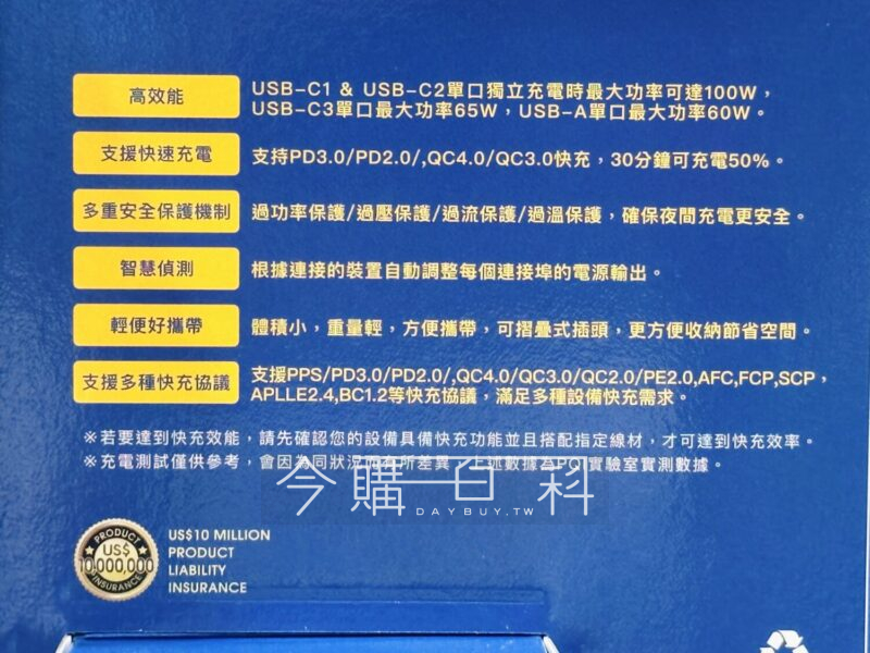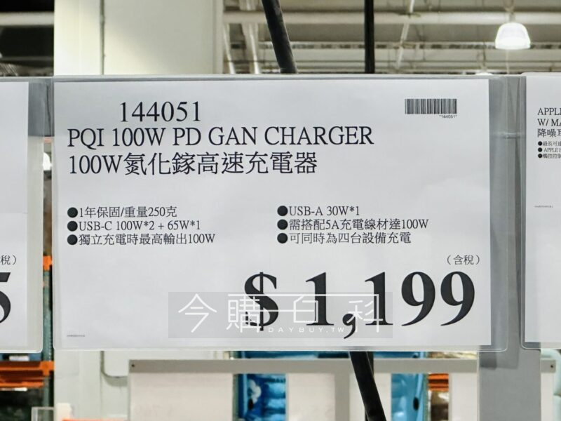 USB-C 100W*2+65W*1,獨立充電時最高輸出100W,USB-A 30W*1,需搭配5A充電線材達100W,可同時為四台設備充電。