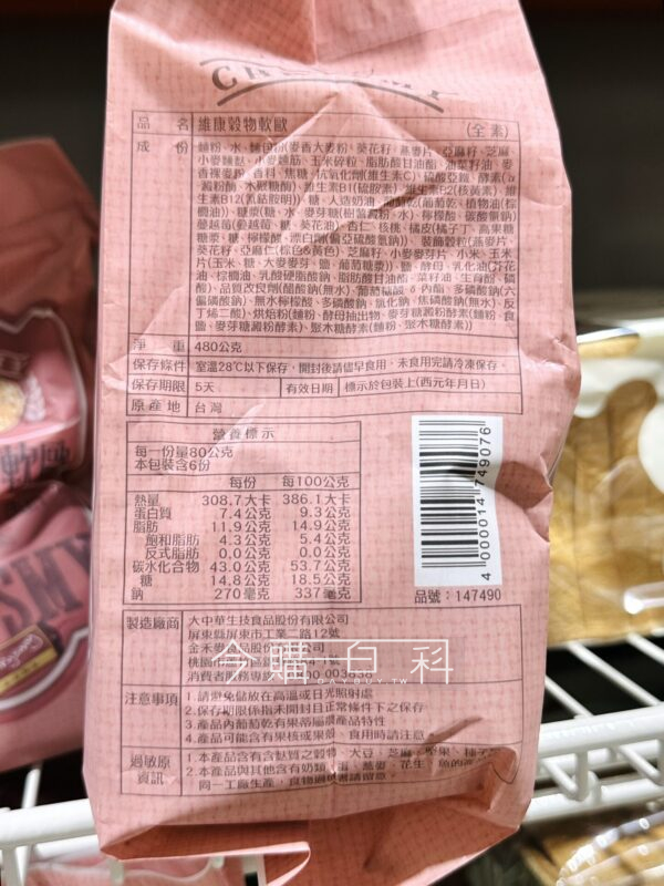 軟歐風格、口感柔軟紮實,選用含有維生素B1、B2、B12,麵包粉原料,添加蔓越莓、葡萄乾等,酸甜滋味搭配外層穀粒香氣,風味豐富有層次。