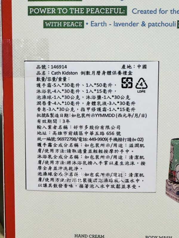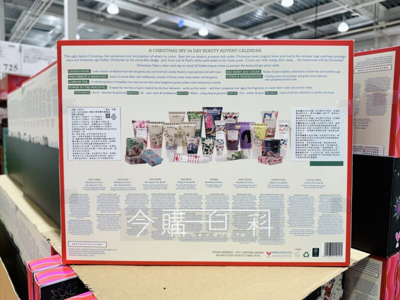 24天倒數月曆保養組,聖誕包裝節慶氛圍,自用送禮皆合宜,內含護手霜、沐浴露、沐浴鹽、泡澡錠、護唇膏、身體乳、香皂、指緣霜。