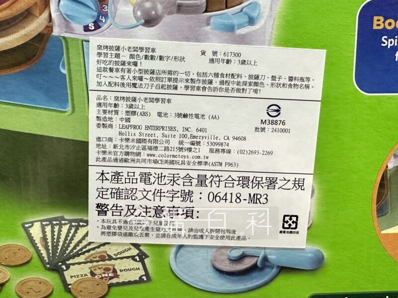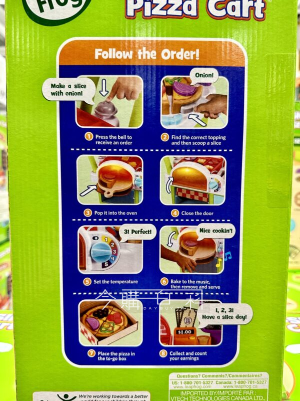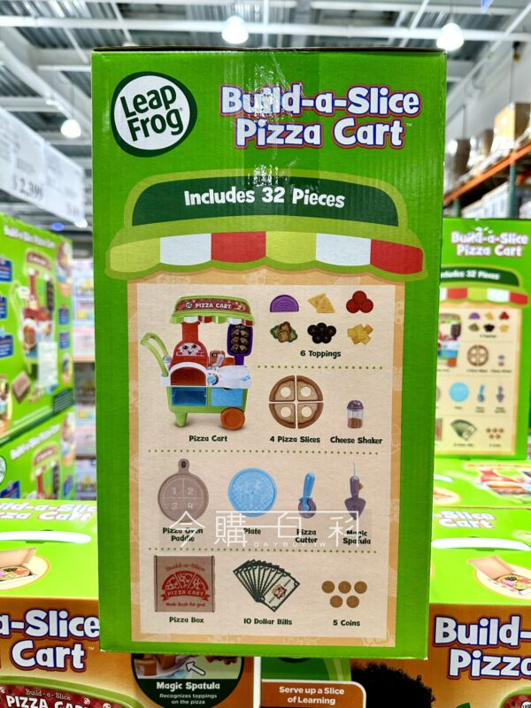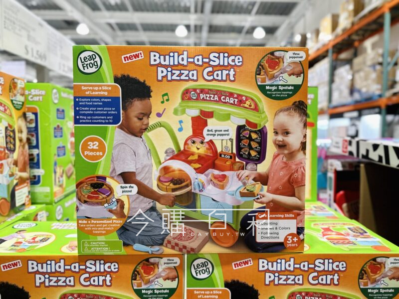 包含六種食材配料、披薩刀、盤子、醬料瓶,探索顏色、形狀和食物名稱,體驗角色扮演,激發孩子想像力與創造力,適用年齡:三歲以上。