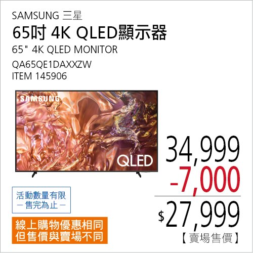 SAMSUNG 65吋4K QLED顯示器 #145906
