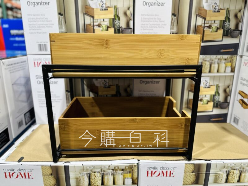 竹製搭配堅固鋼架,適合放置各式食物、調料,也可放置各式物品及工具,抽屜式設計,易取物,雙層設計,可分類擺放物品。
