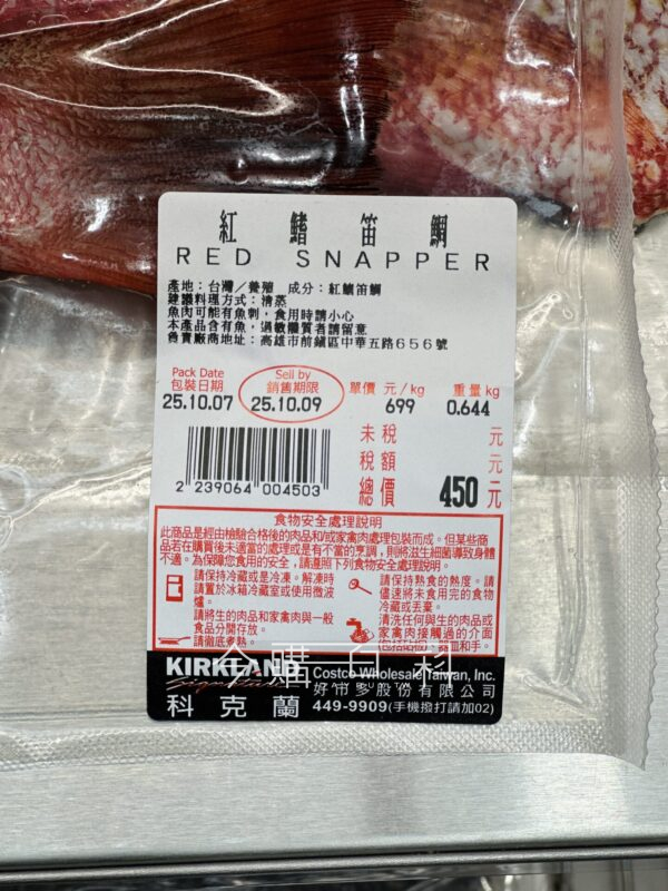 冷藏、養殖,建議料理方式:清蒸,產地:台灣,去鱗、去鰓、去內臟。