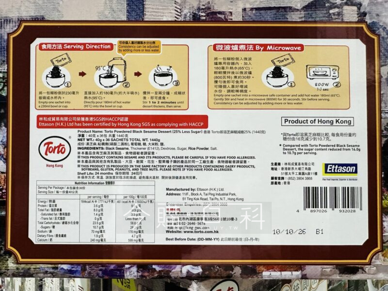 正宗道地香港芝麻糊,黑芝麻細膩研磨製成,食用方式:沖泡、微波,可以搭配湯圓等。