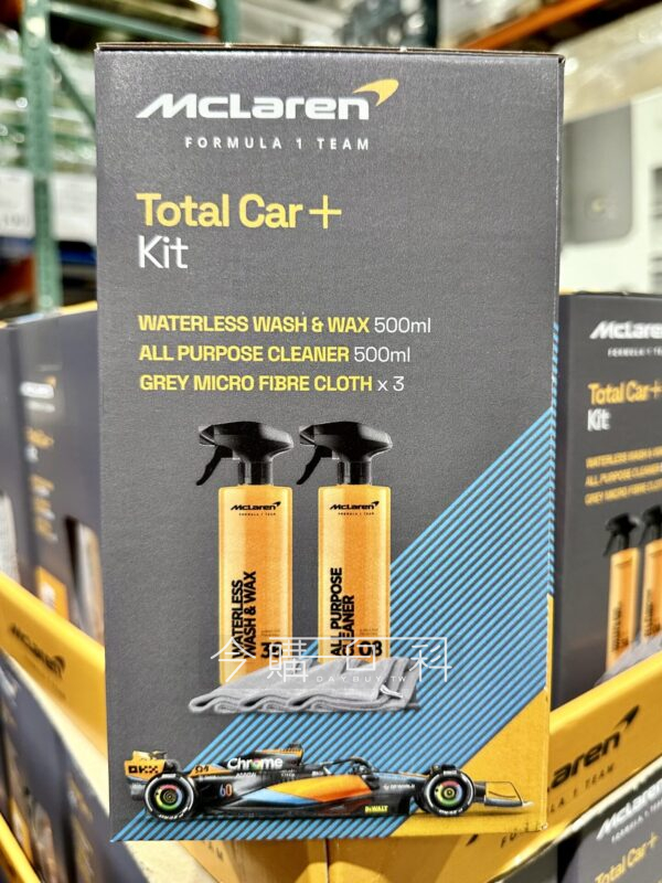 含免水洗車蠟、萬用清潔劑及超細纖維擦拭布*3,洗車前先清除車面明顯髒汙,搭配使用擦拭布清潔及打蠟,清潔劑適用汽車內外裝表面,擦拭布柔軟布面不傷車體。