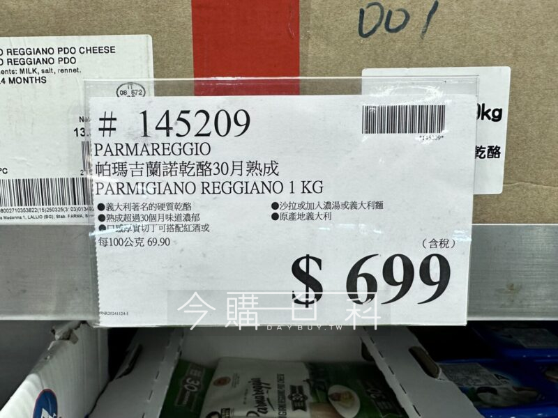 義大利著名的硬質乾酪,熟成超過30個月味道濃郁,口感厚實切丁可搭配紅酒或沙拉或加入濃湯或義大利麵,原產地:義大利。