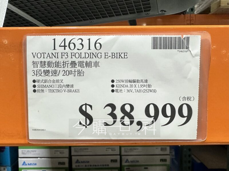 硬式鋁合金前叉,SHIMANO三段內變速,前煞:TEKTRO V-BRAKE,250W前輪驅動馬達,KENDA 20*19.5吋胎,電池:36V, 7AH (252WH)。