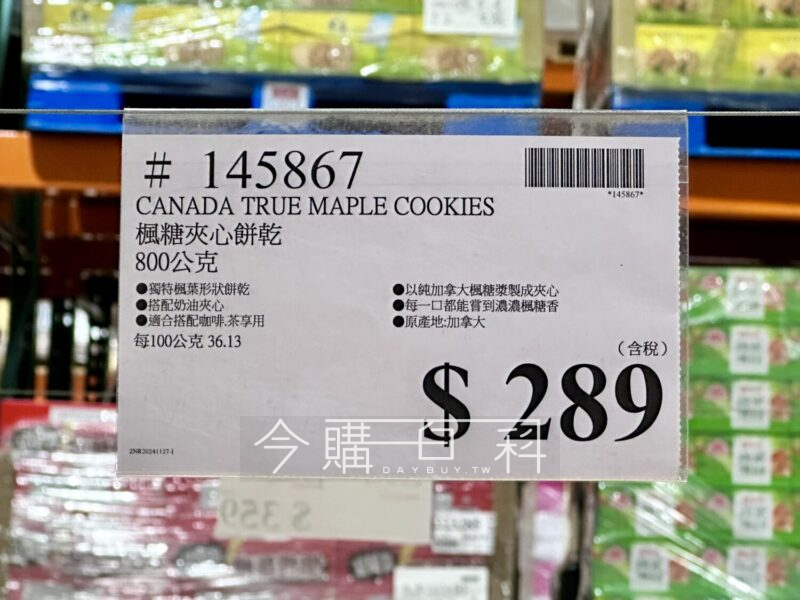 獨特楓葉形狀餅乾,搭配奶油夾心,適合搭配咖啡、茶享用,以純加拿大楓糖漿製成夾心,每一口都能嚐到濃濃楓糖香,原產地:加拿大。