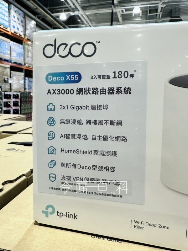 AX3000雙頻WIFI,每顆DECO皆可獨立使用,3XGIGABIT供更多設備連接,WIFI6速度高達3.0GBPS,高通雙核處理器,三年保固。