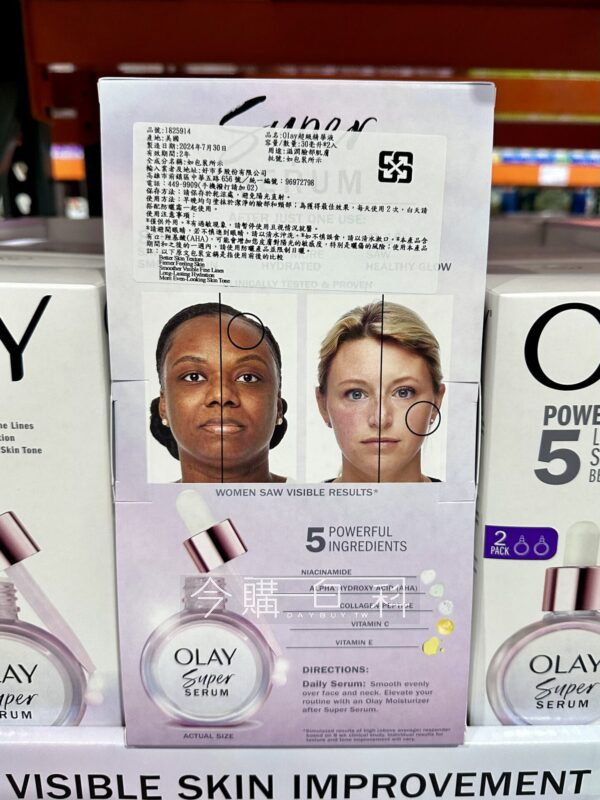 含菸鹼醯胺、維他命C&E、膠原蛋白、果酸,均勻膚色、維持肌膚健康,深層高度保濕,白天使用建議搭配防曬,美國製造。