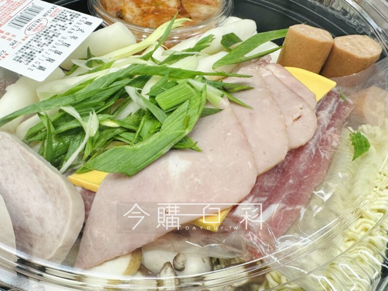 道地韓式辣醬搭配豐富食材,可加高湯煮成韓式鍋物或加少許水做為韓式炒年糕,豬肉產地:火腿(台灣),午餐肉、豬五花(台灣),熱狗(美國)。