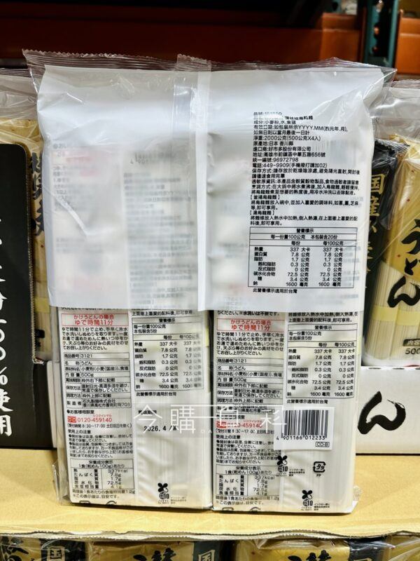 原產地:日本香川縣,100公克麵條以1公升沸水進行烹煮,以傳統配方進行製麵,享煮容易,麵體口感Q滑,熱湯麵,冷麵料理都適合。