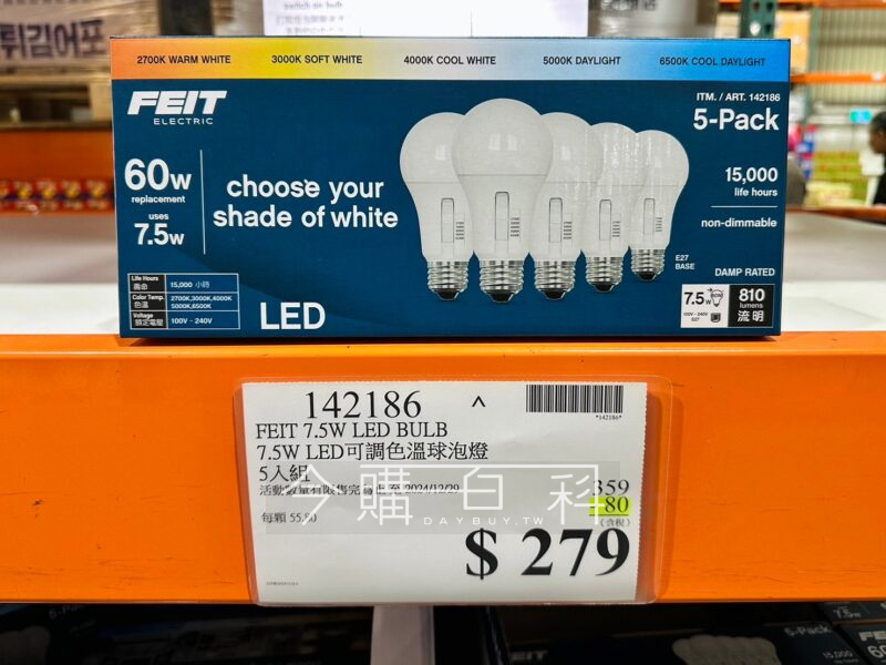 FEIT 7.5W LED可調色溫球泡燈 5入組 #142186