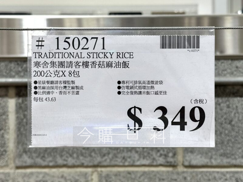 星級餐廳請客樓監製,黑麻油採用台灣芝麻製成,比例適中、香而不苦澀,專利可排氣高溫微波袋,仿電鍋式循環加熱,完全覆熱讓米飯口感更佳。