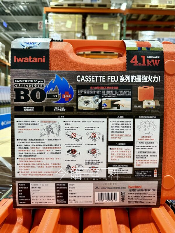 全新熄火即斷瓦斯安全裝置,安全接頭,雙重密封設計,附硬式塑膠收納盒,火力:4.1KW/13900 BTU/H,尺寸:34*30*9公分,無氟素塗層。