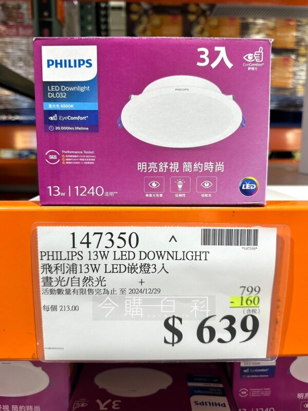PHILIPS 飛利浦13W LED嵌燈 晝光/自然光 #147350