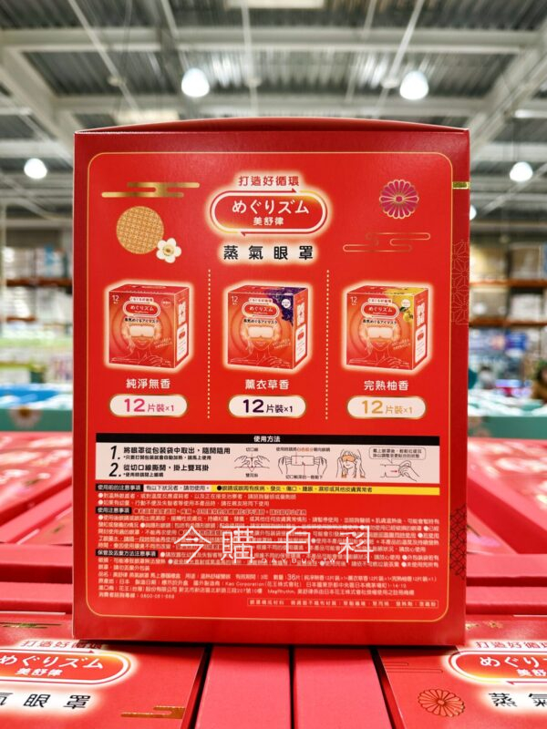 無香12片、薰衣草12片、柚香12片,拋棄式眼罩,舒緩雙眼疲勞,一開包裝即可自動加溫,熱度持續約20分鐘,約40度溫熱蒸氣。