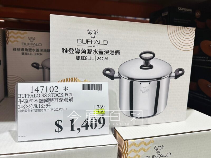 BUFFALO 牛頭牌不鏽鋼雙耳深湯鍋 24公分/8.1公升 #147102