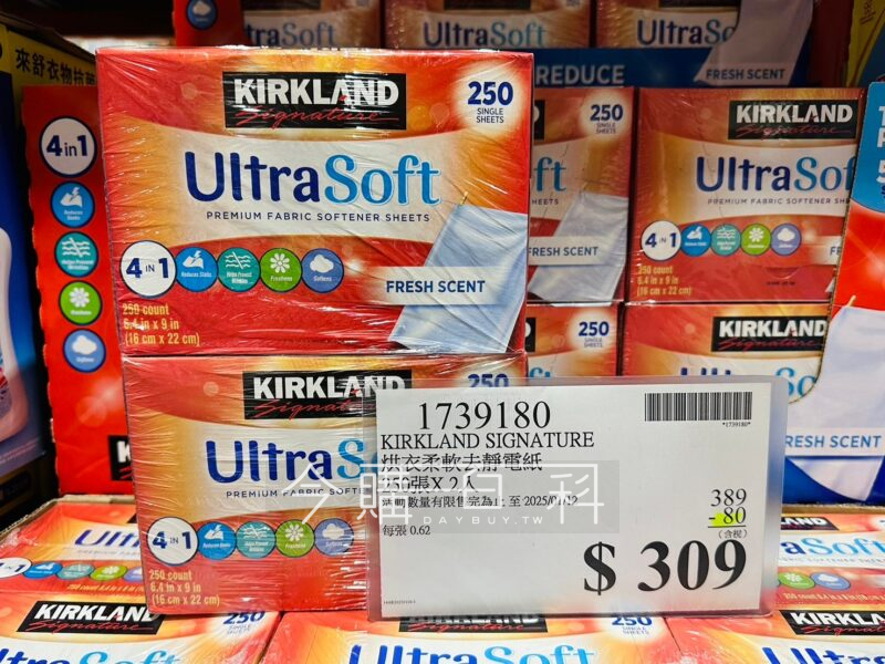 KIRKLAND SIGNATURE 烘衣柔軟去靜電紙 #1739180