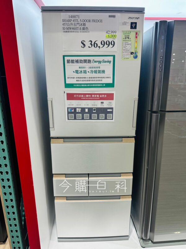 SHARP 457公升五門冰箱 SJ-MW46HT-S 銀色 #140071