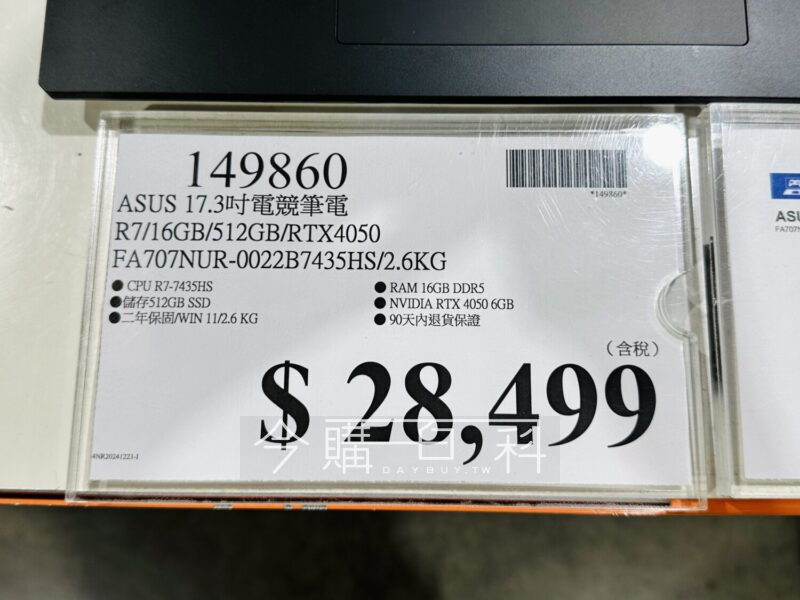 ASUS 17.3吋電競筆電 #149860 https://www.daybuy.tw/costco/167889/