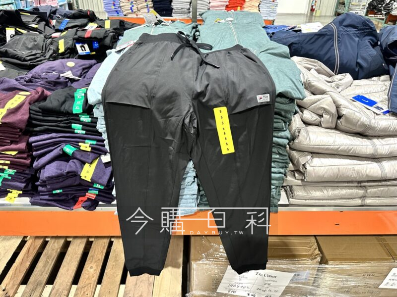 平織布料製成挺闊剪裁,褲頭抽繩可調節鬆緊,腰部和褲管為鬆緊設計,雙側袋。