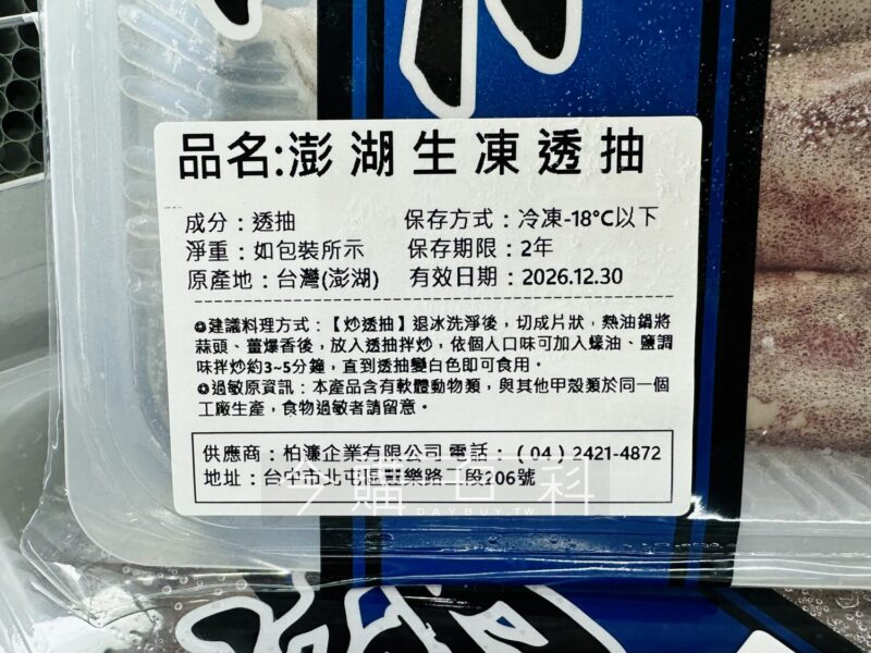 冷凍野生,建議料理方式:川燙、熱炒,產地:台灣澎湖。