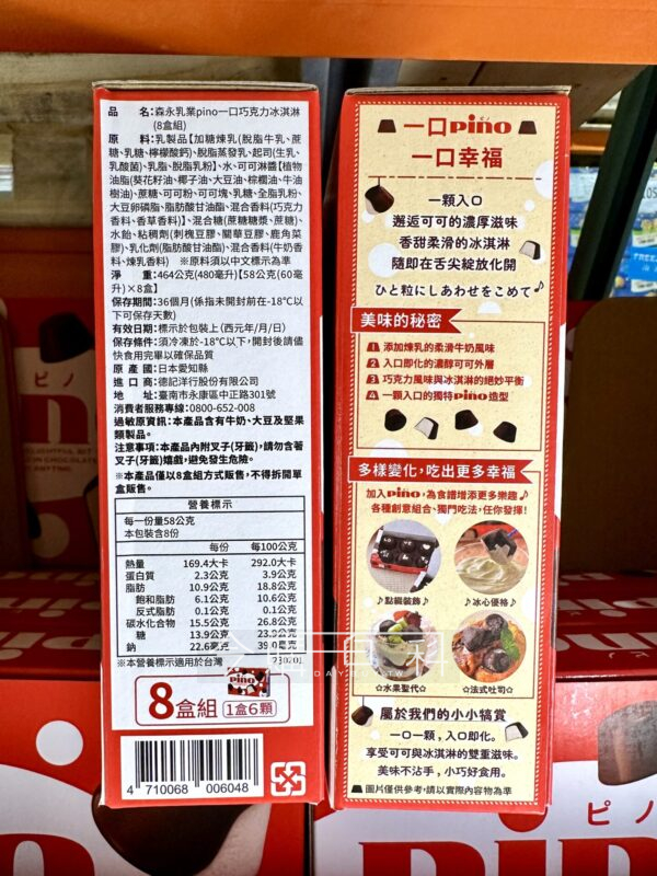 一口一顆巧克力冰淇淋,濃醇可可外層,包覆柔滑牛奶風味冰淇淋,美味不沾手,小巧好食用,產地:日本,每盒6入,共8盒。