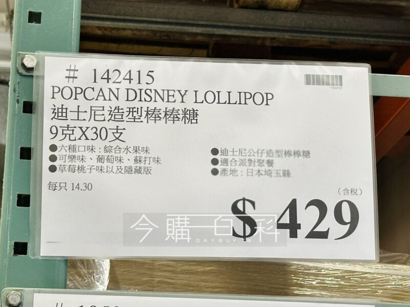 六種口味:綜合水果味、可樂味、葡萄味、蘇打味、草莓桃子味以及隱藏版,迪士尼公仔造型棒棒糖,適合派對聚餐,產地:日本埼玉縣。