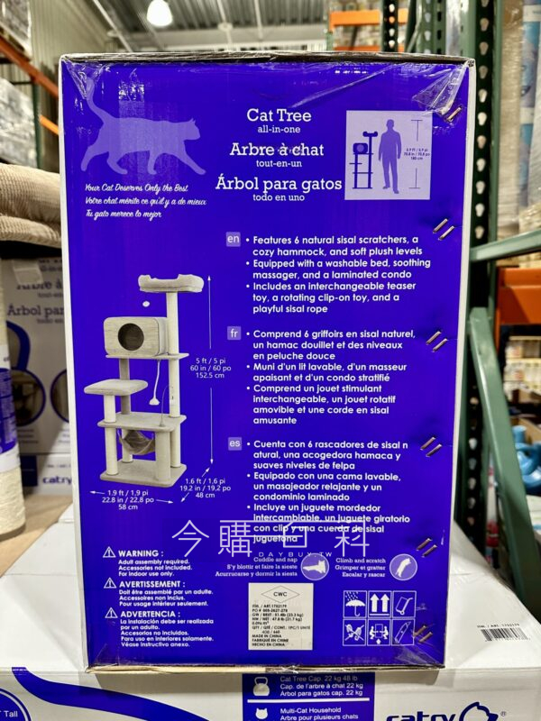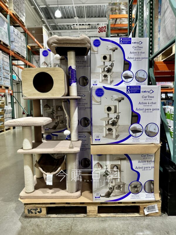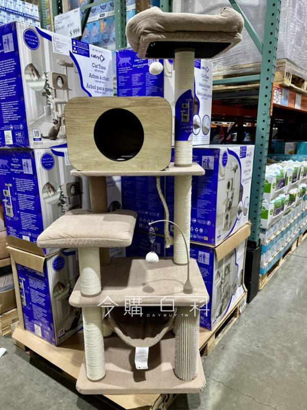 臥鋪床套可拆除機洗好清潔,含蹭毛柱、六根劍麻磨爪柱,內附簡易工具與紅裝說明書,軟墊吊床設計提供舒適空間,三種玩具設計滿足玩樂需求,安裝過程無需額外準備工具。