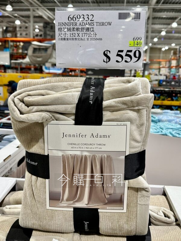 JENNIFER ADAMS 燈芯絨柔軟舒適毯 #669332
