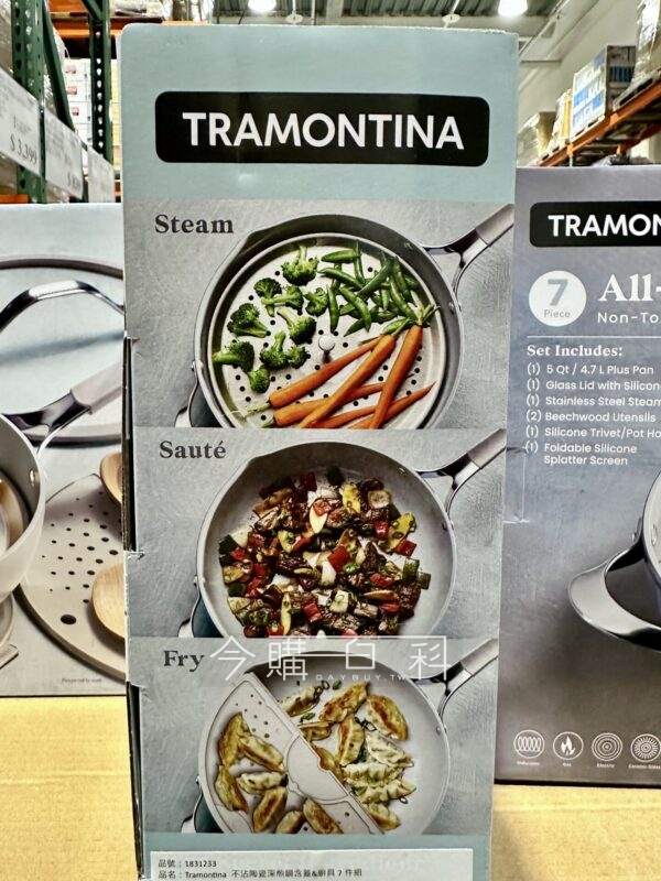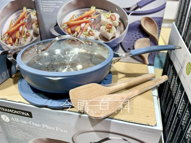 蒸、煎、炒一鍋完成,含30CM深煎鍋、上蓋、不鏽鋼蒸架、木製廚具*2、可折疊矽膠架、隔墊各一,適用於各式爐具含電磁爐,適用於烤箱、洗碗機清洗。
