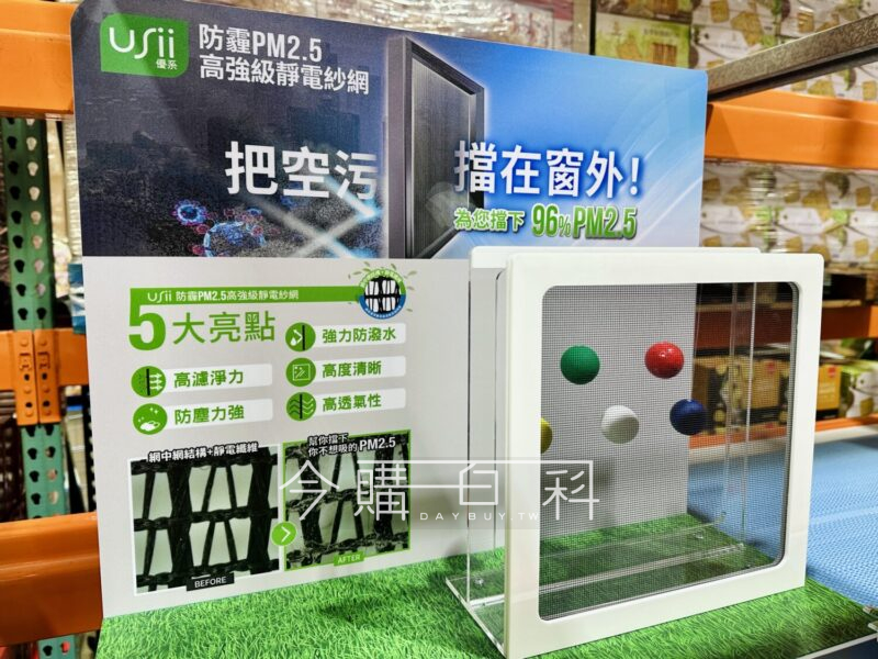 高強級靜電吸附力,使用防潑水特殊塗層,透氣性佳室內不悶熱,減少室內落塵,可防止雨水噴濺窗內,尺寸:100*420公分。