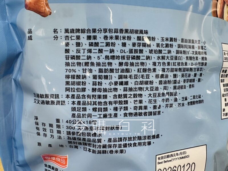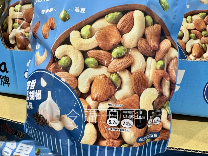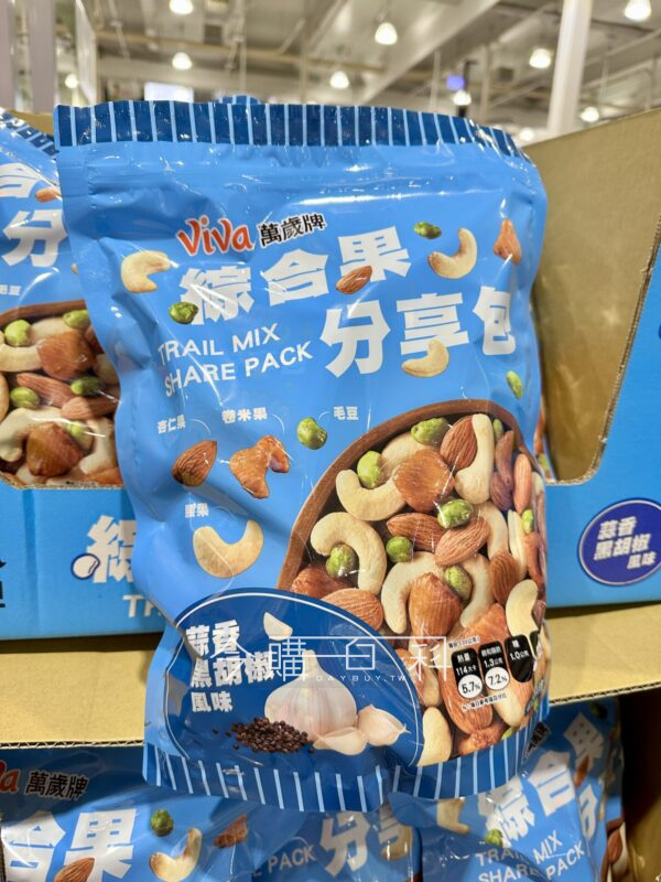 嚴選低溫烘焙杏仁果、腰果混搭毛豆及道地日式卷米果,鹹香酥脆適合搭配茶食用,佐以蒜香黑胡椒調味,蒜味濃厚,椒香過癮,小包裝易分享。