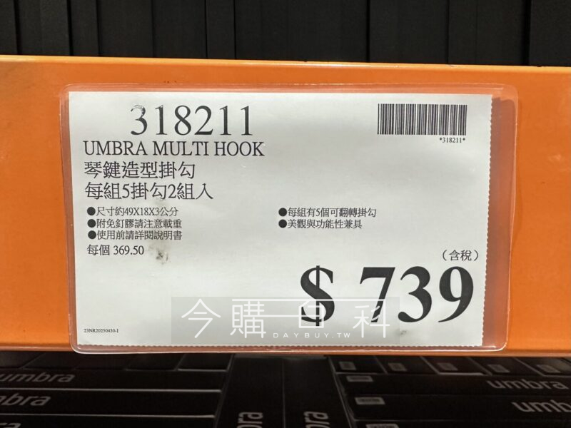 尺寸約49*18*3公分,附免釘膠請注意載重,使用前請詳閱說明書,每組有5個可翻轉掛勾,美觀與功能兼具。