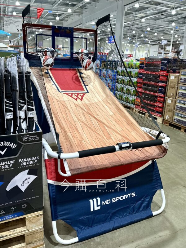 電子計分器搭配音效,可切換八種遊戲競賽模式,組裝簡單、可折疊收納,內附四顆籃球,約206*122*高213CM,重約27.5公斤。
