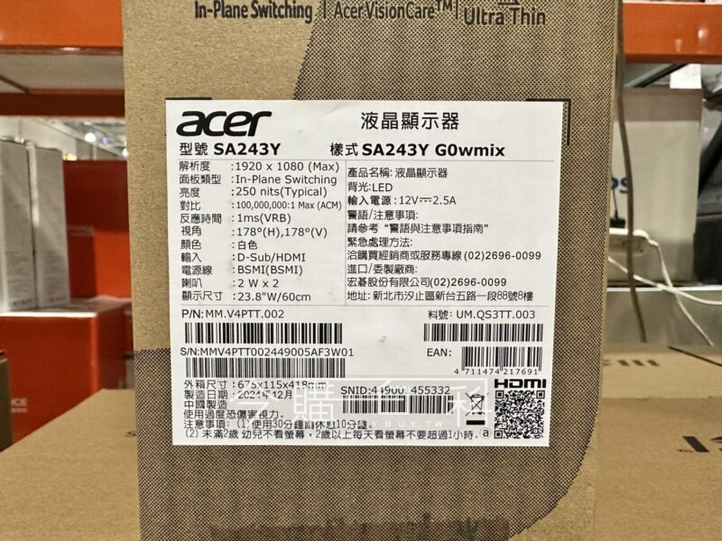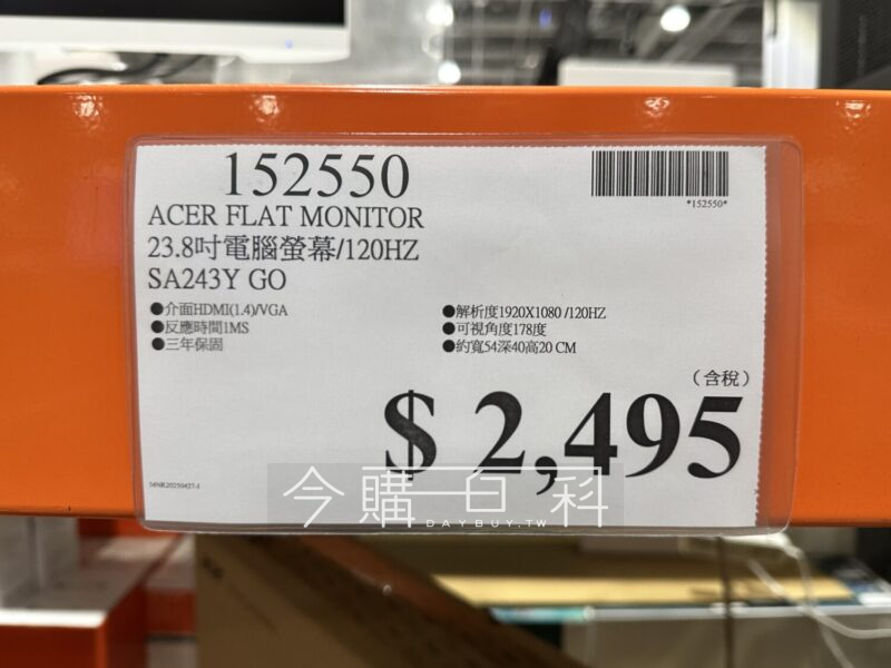 ACER 23.8吋電腦螢幕/120HZ #152550 https://www.daybuy.tw/costco/187427/