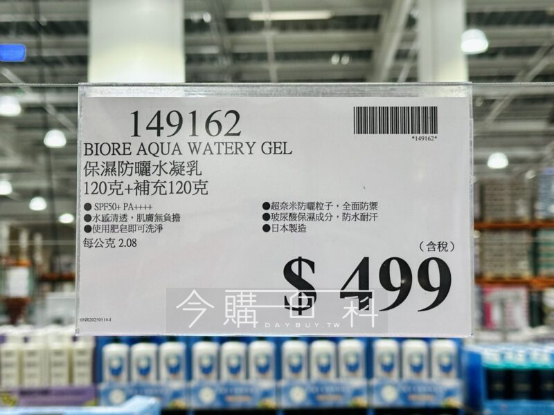 SPF50+ PA++++,水感清透,肌膚無負擔,使用肥皂即可洗淨,超柰米防曬粒子,全面防禦,玻尿酸保濕成分,防水耐汗,日本製造。