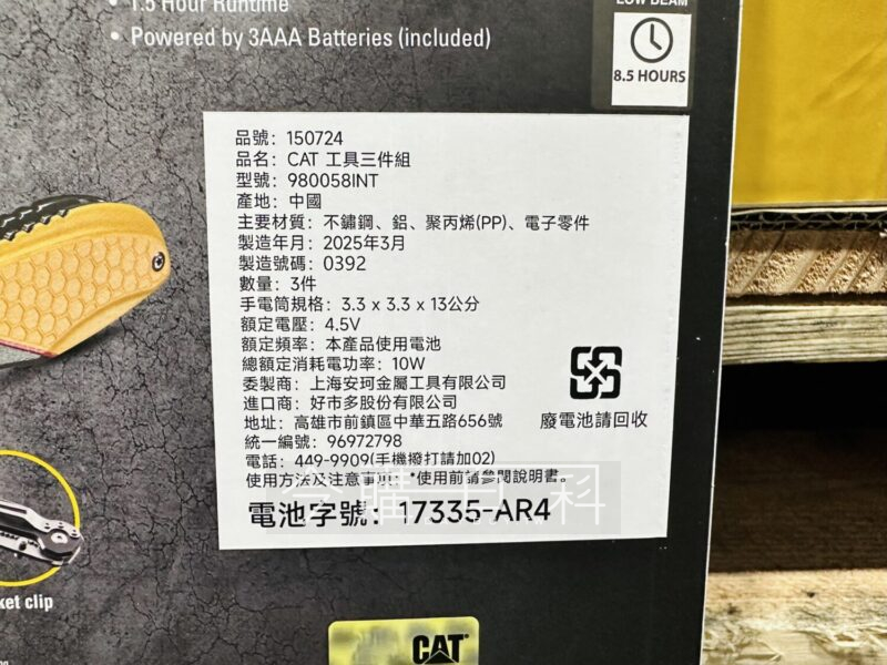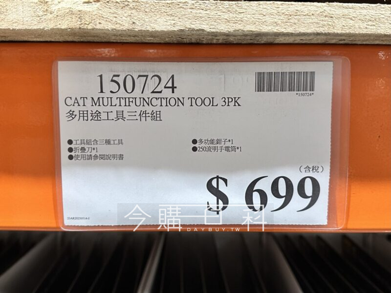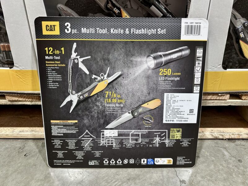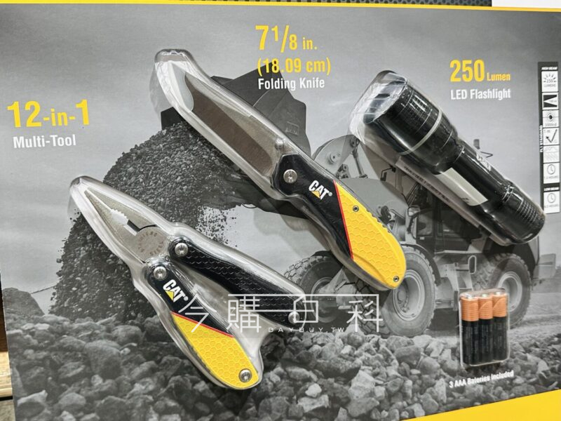 工具組含三種工具:多功能鉗子*1、折疊刀*1、250流明手電筒,使用請參閱說明書。