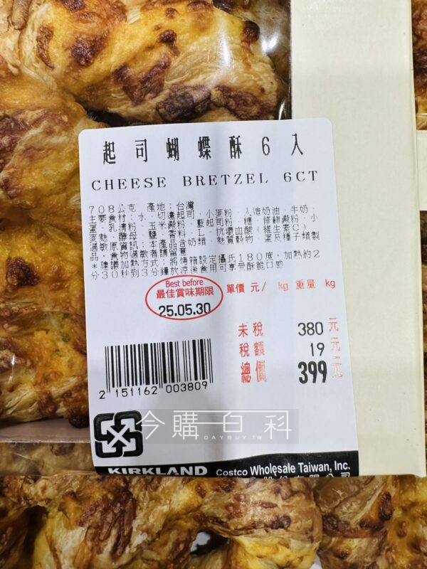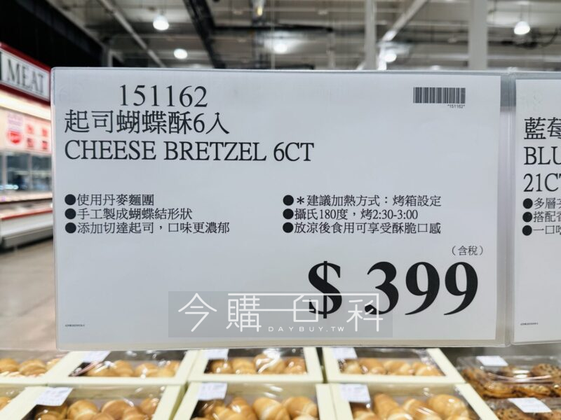 使用丹麥麵團,手工製成蝴蝶結形狀,添加切達起司,口味更濃郁。