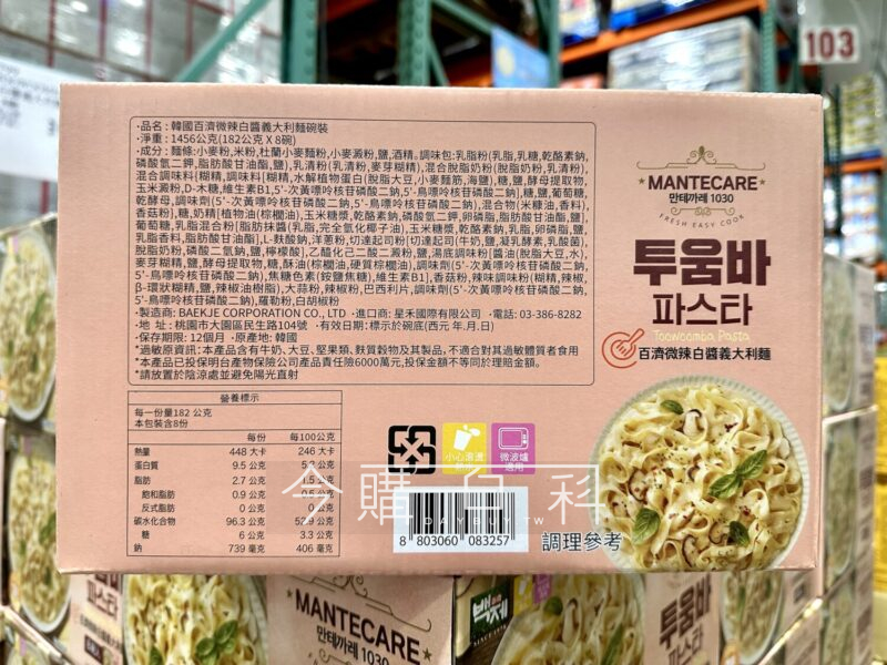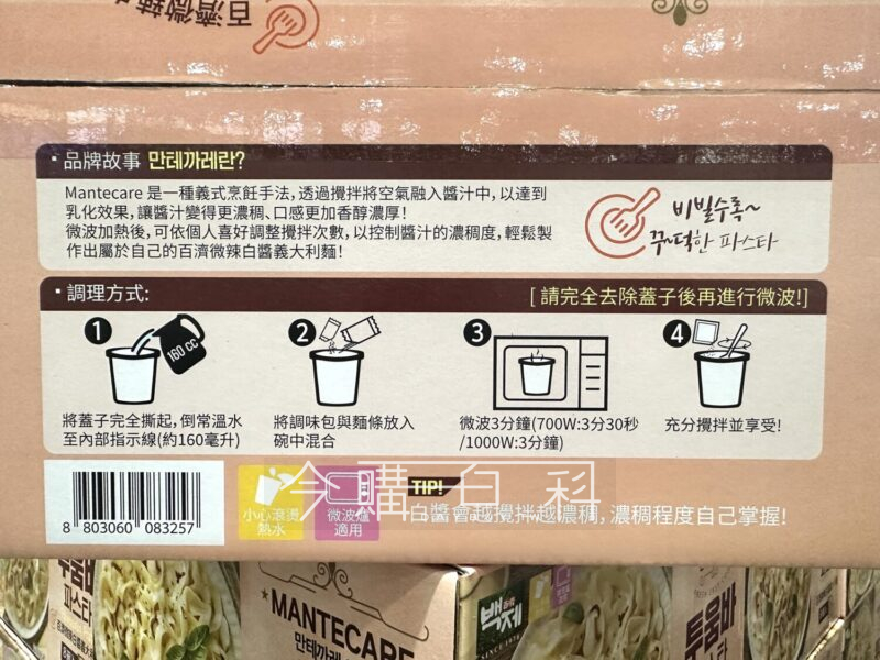 風靡韓國的白醬義大利麵,寬扁麵Q彈,帶小麥香氣,微辣的白醬,濃郁不膩口,加水微波3分鐘即可,碗裝方便食用,可依個人喜好調整濃稠程度。