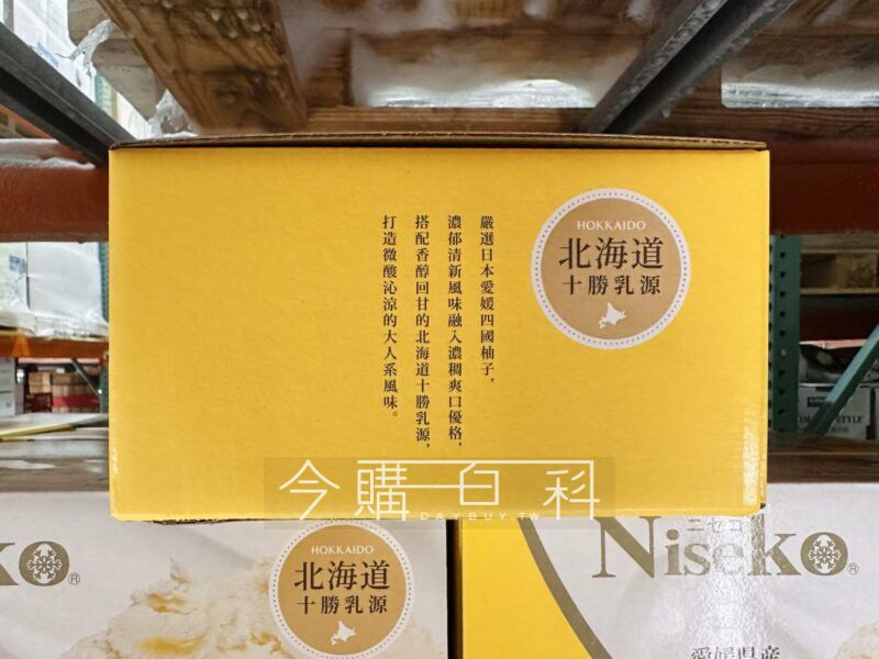 使用北海道乳源,濃郁奶香的冰淇淋為基底,添加優格及日本柚子汁,微酸中帶有清甜果香,清爽且有層次,每盒重量1250公克。