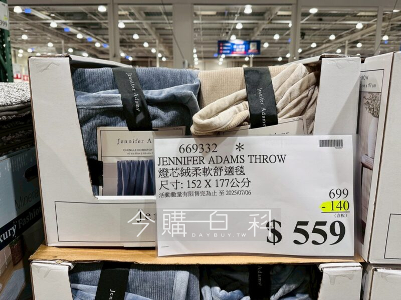 JENNIFER ADAMS 燈芯絨柔軟舒適毯 #669332