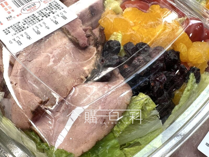 特調香草風味檸檬油醋醬,煙燻燒烤牛肉切片搭配蘿蔓、鮮果與果乾,口感多層次,清爽又美味,燒烤牛肉切片使用澳洲牛。