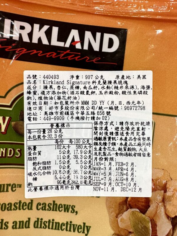 內含腰果、杏仁、南瓜籽仁,適合搭配茶或是清涼的飲料,也可當點心直接食用,不含麩質,原產地:美國。